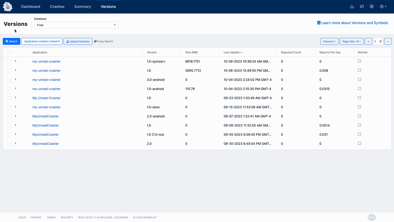 Symbol stores can be removed by navigating to the [Versions](https://app.bugsplat.com/v2/versions) page. Click the checkbox next to the versions containing symbols you want to remove. Click the **Delete Symbols** button to remove the symbols for the selected versions.