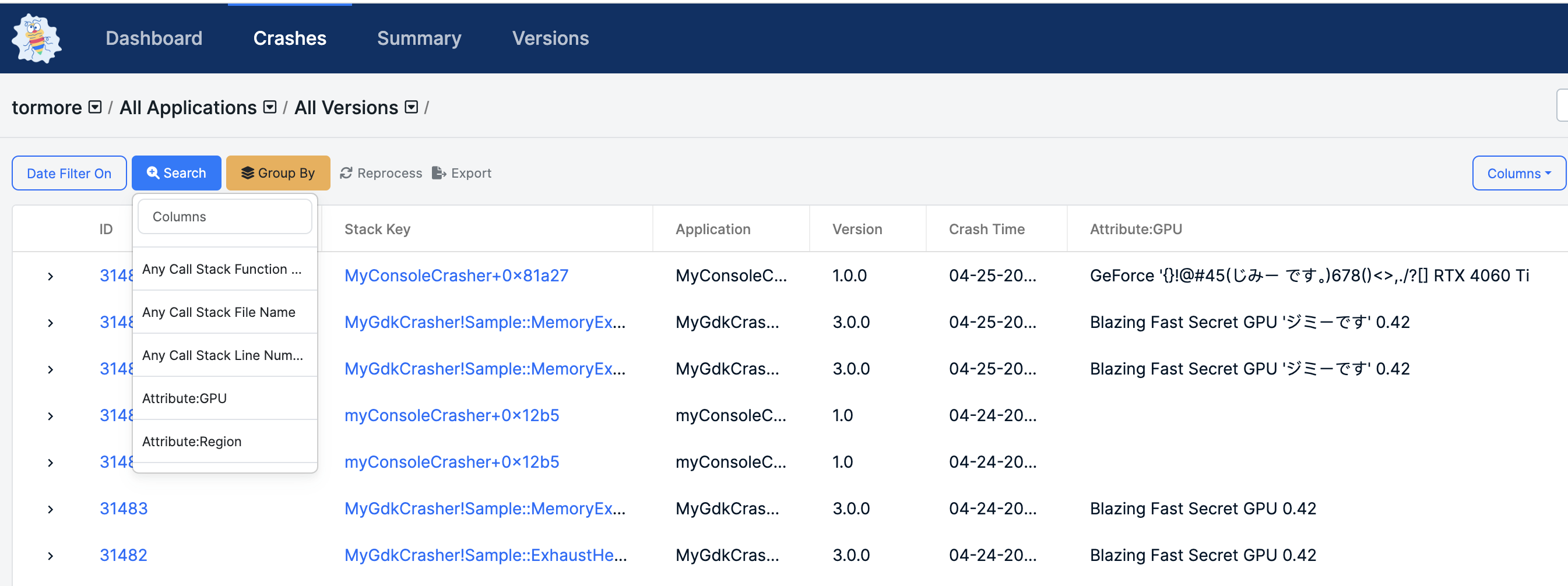 * **Display and Visibility:** Custom attributes can be viewed as columns on the crash report page, and are fully accessible on the crash detail pages.